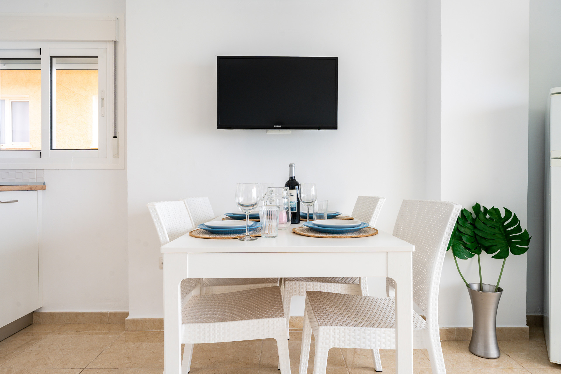 El corazón del alojamiento es su salón-comedor con cocina abierta, un espacio diáfano, luminoso y decorado con gusto. La cocina, totalmente equipada con lavavajillas, microondas, horno y todo lo necesario, se integra a la perfección con un salón amplio, cómodo y muy acogedor.
