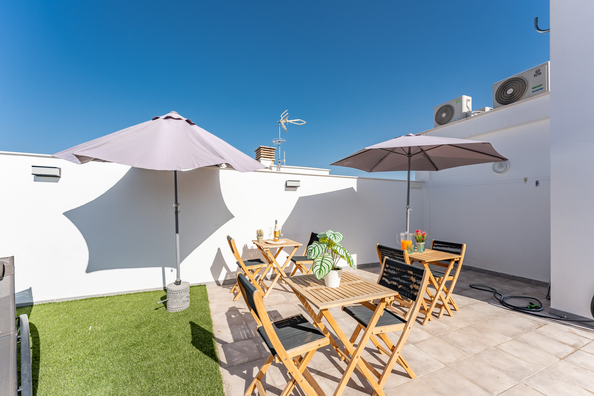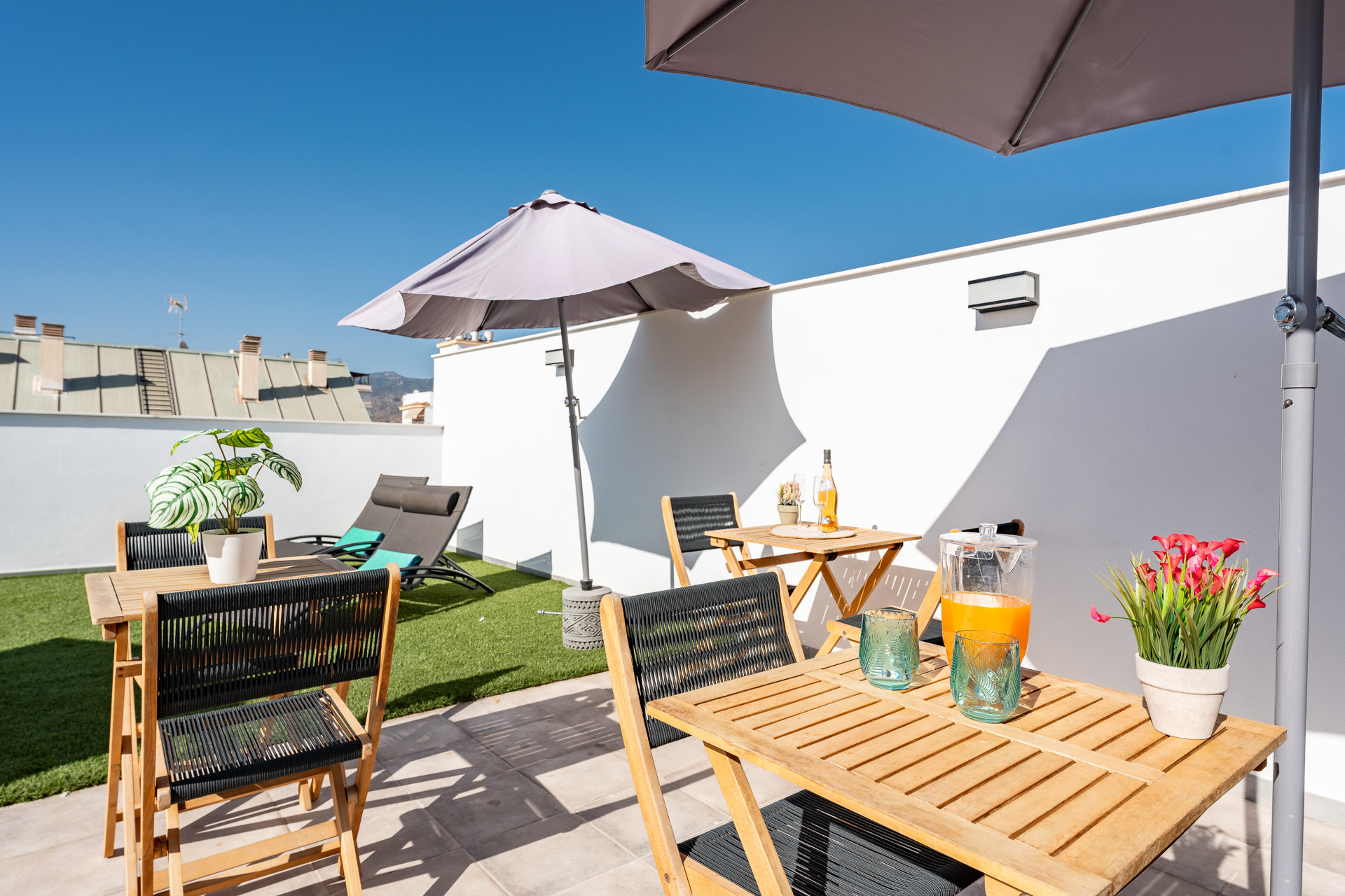 Accesible a pisos superiores con ascensor, y podrás disfrutar de una acogedora terraza compartida, con mobiliario para disfrutar del clima mediterráneo. Es ideal para una escapada relajante y cómoda en Málaga.