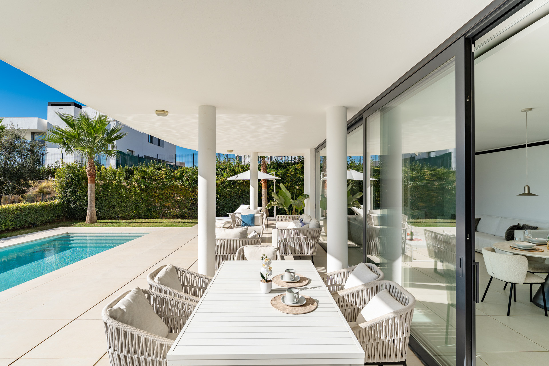 Die Unterkunft verfügt über einen Aufzug, einen Garten, Gartenmöbel, ein umzäuntes Grundstück, Terrasse 70 m², eine Waschmaschine, ein Bügeleisen/-brett, ein Internetanschluss (WLAN), ein Föhn, eine Zentralheizung, eine Klimaanlage in der ganzen Unterkunft, ein Privatpool, eine überdachter Parkplatz (2 Stellplätze) auf dem Grundstück, ein Fernsehgeräte.