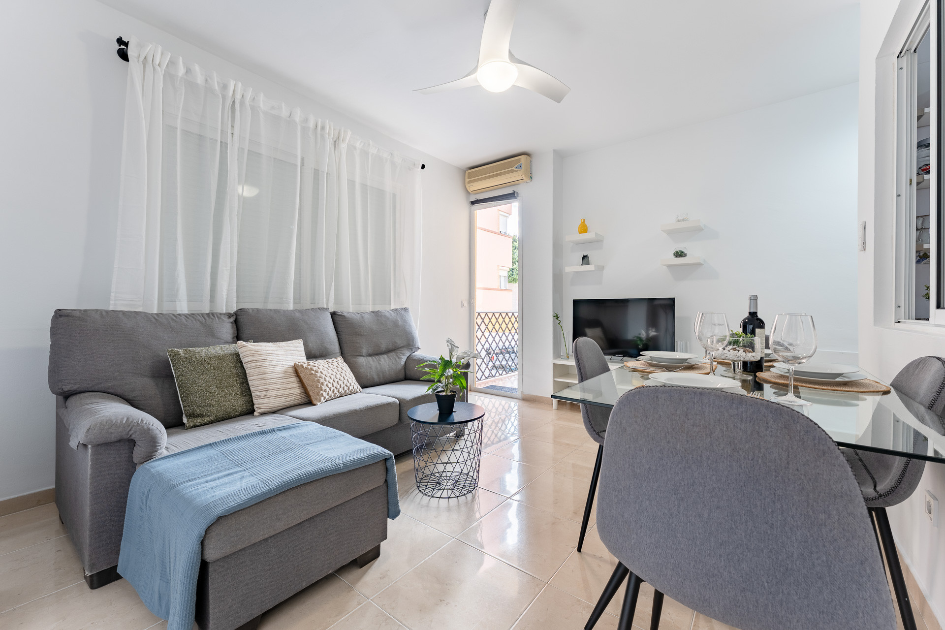 Recently renovated apartment very close to the centre of Málaga, ideal for enjoying the city with comfort. It has two bedrooms, one with a double marriage bed and another with a single bed and desk, perfect for studying or teleworking. It has a bathroom with shower, a spacious and comfortable living-dining room with TV and air conditioning, and a kitchen equipped with fridge, oven, Dolce Gusto coffee machine and all necessary utensils. The kitchen opens onto a quiet, furnished interior courtyard, ideal for relaxing and enjoying the outdoors.