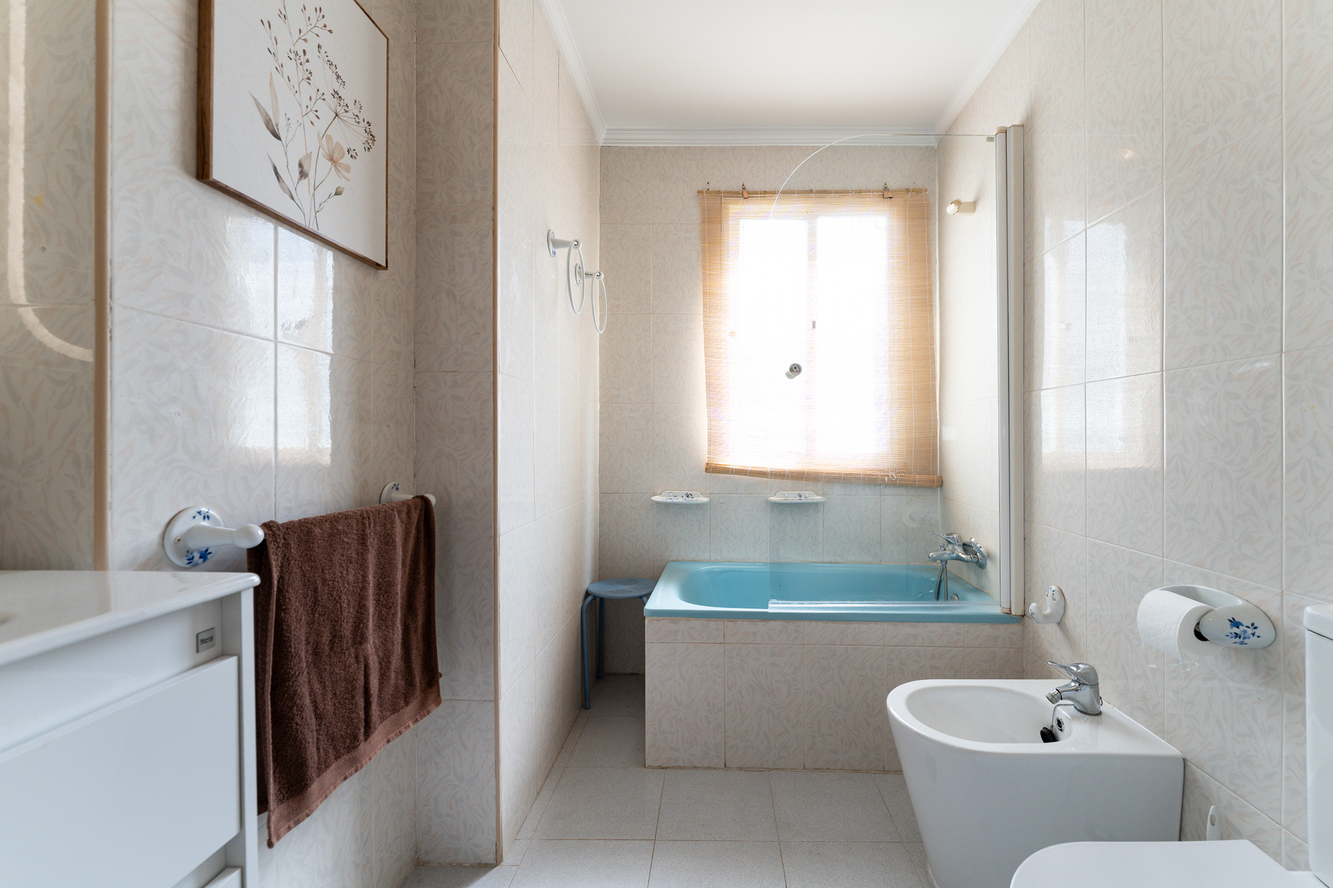 With two bedrooms - one with a double bed and another with two single beds - and a full bathroom with a bathtub, the space is designed to offer comfort and functionality to the whole family.