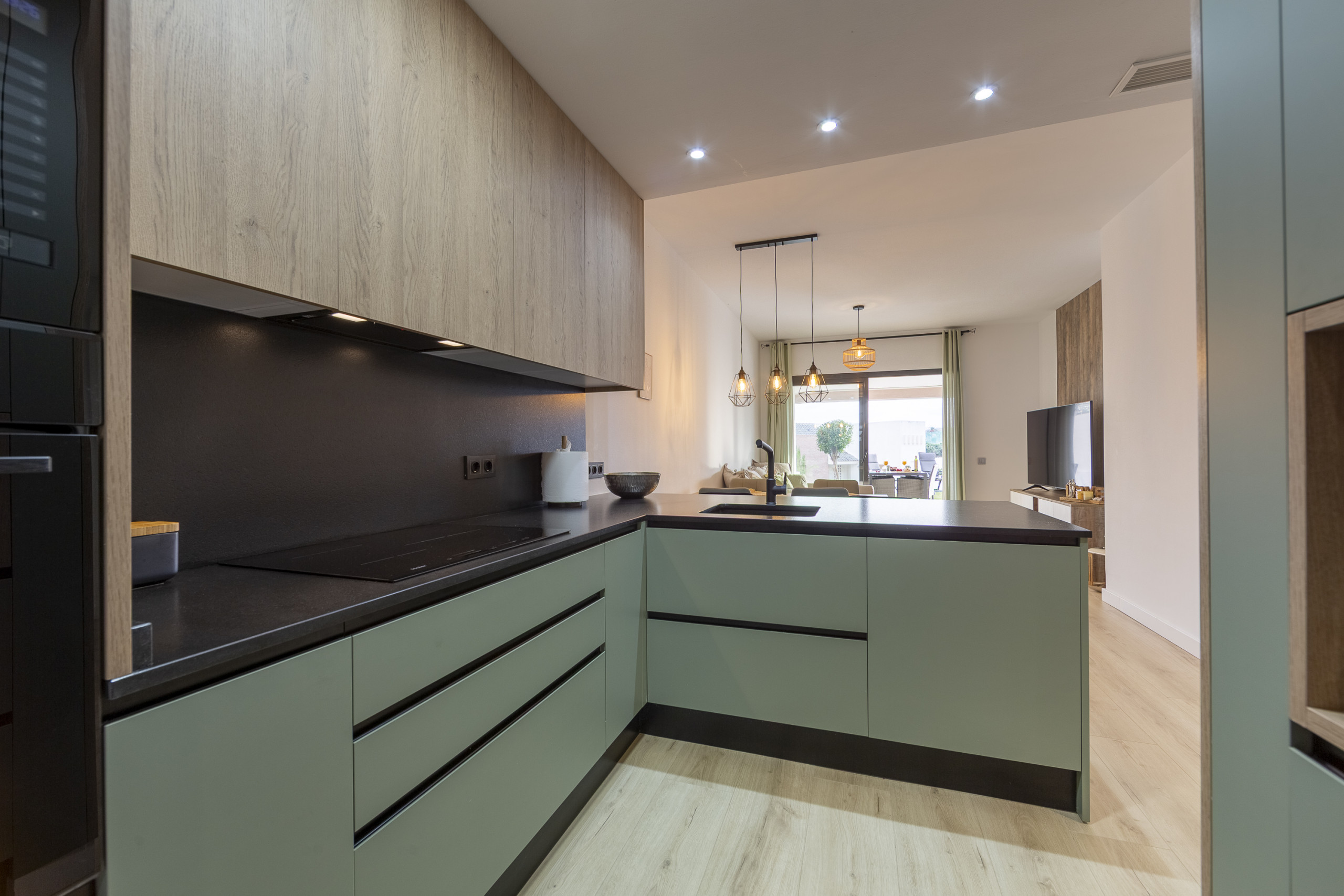 The kitchen, fully equipped, integrates with the living room, creating a bright environment. Additionally, it has a small laundry area. From the living room, you can access the large terrace perfect for enjoying the outdoors.