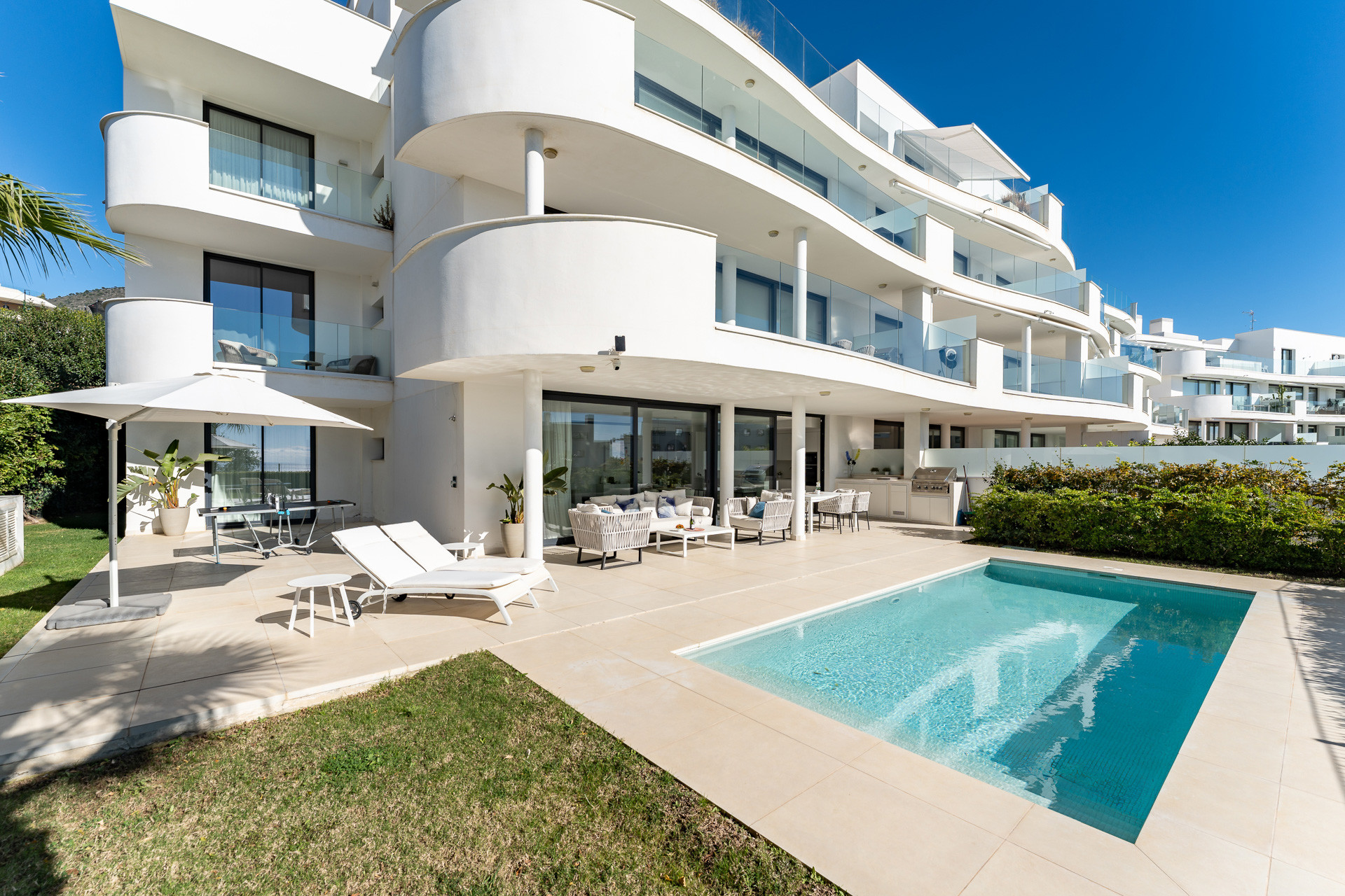 Ce logement spectaculaire combine élégance, confort et intimité dans chaque détail. Il dispose d'une terrasse spacieuse et meublée, parfaite pour profiter du climat méditerranéen, prendre le soleil ou s'amuser avec sa propre table de ping-pong. Vous aurez une piscine privée, un espace exclusif pour se déconnecter. De plus, vous disposerez de deux places de parking privées.