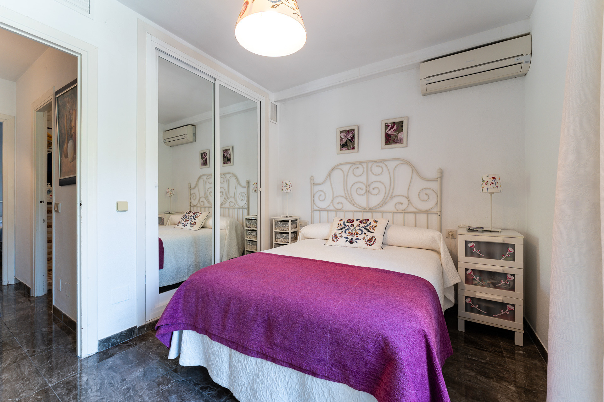 Los dormitorios son luminosos y ambos disponen de acceso a espacios exteriores. La vivienda cuenta con aire acondicionado frío-calor en todas las estancias, garantizando confort durante todo el año.