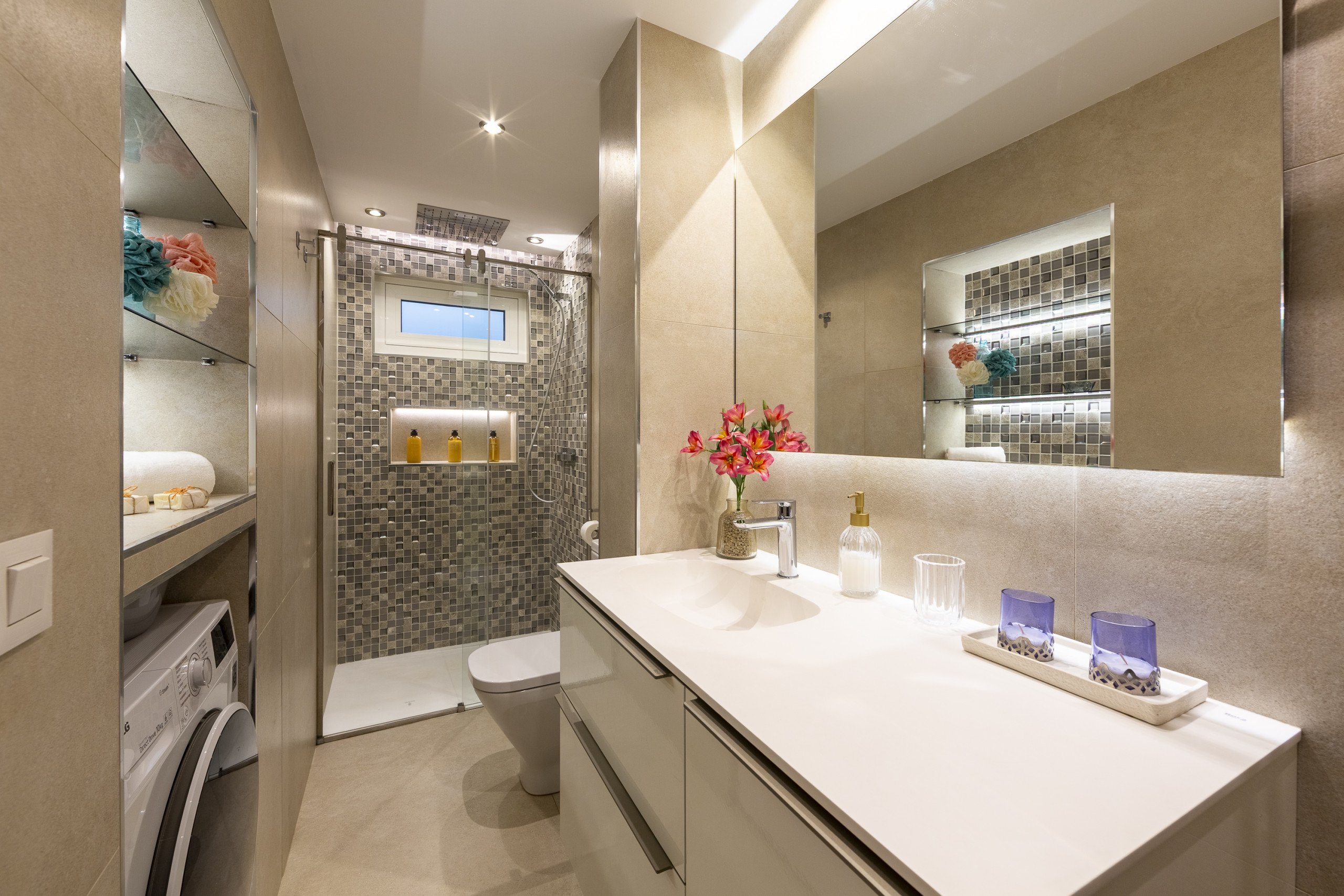 配有 庭院家具, 9 m² 露台, 洗衣机, 熨斗, 互联网接入 (Wi-Fi无线网), 吹风机, 热泵供暖, 空调, 车库在同一建筑物内, 3 台电视.