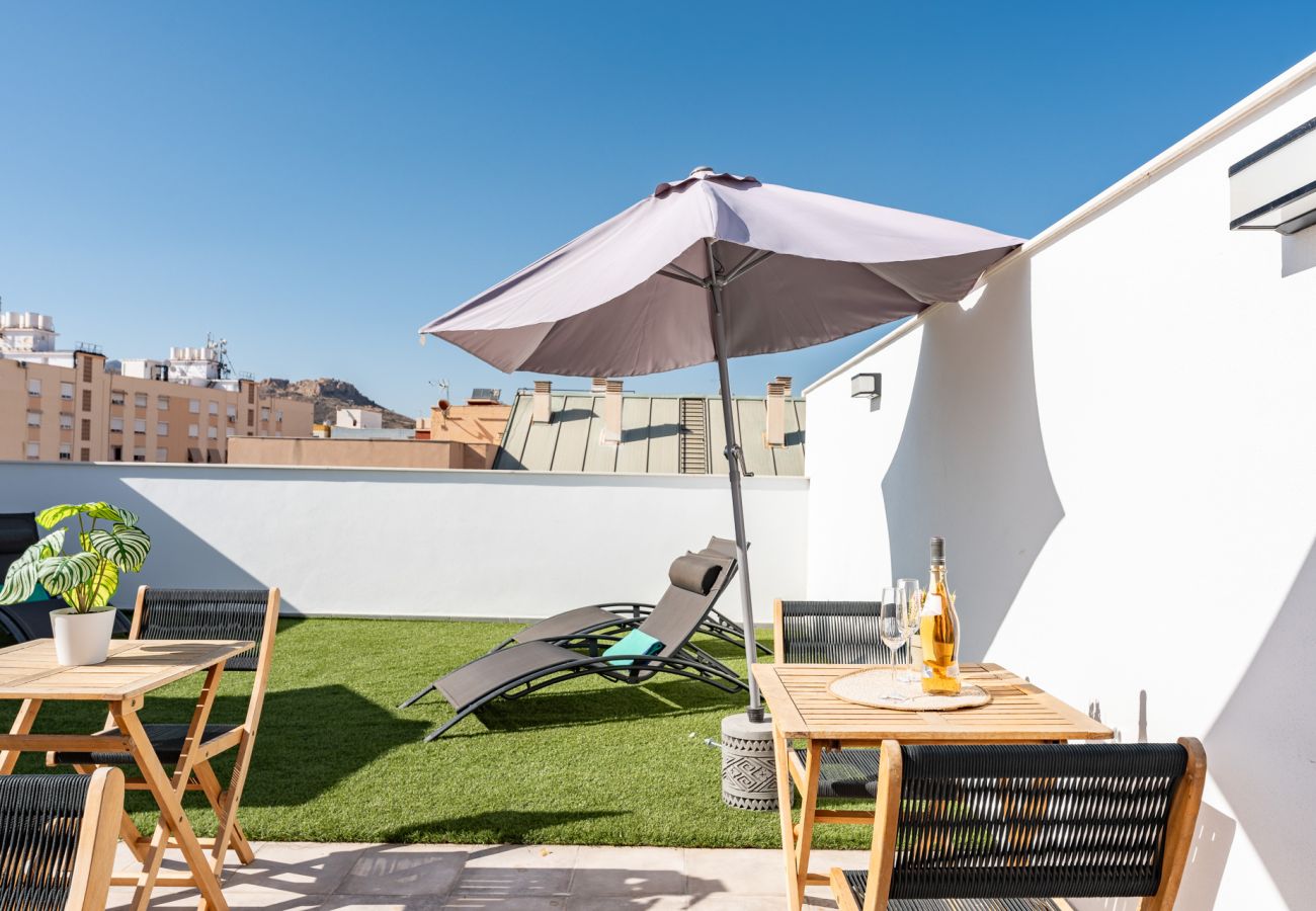 在 Málaga 的 公寓 有 1 卧室 有 可容纳 4 人. 住宿 有 63 m². 距离 "Bar La Almedina" 从餐厅 70 m, "Pataconazo López" 从餐厅 250 m, "Mercadona" 超市 350 m, "Hospital Civil" from hospital 700 m, "DIA" 超市 750 m, "Metro Atarazanas" 地铁站 2 km, "Estación de autobus" 汽车站 2 km, "Estación María Zambrano" 火车站 2 km, "Playa de la Malagueta" 沙滩 4 km, "Playa de la Misericordia" 沙滩 6 km, "Aeropuerto de Málaga" 机场 9 km, "Golf Torrequebrada" 高尔夫球场 22 km, "Nerja Pueblo" 市中心 54 km, "Frigiliana" 市中心 57 km. 配有 电梯, 庭院家具, 15 m² 露台, 洗衣机, 互联网接入 (Wi-Fi无线网), 吹风机, 热泵供暖, 空调, 1 电视. 该 开放式厨房的 感应式 厨房, 配备有 冰箱, 微波炉, 冰柜, 碗碟/刀具, 餐具/厨房, 咖啡壶, 面包机, 烧水壶 和 榨汁机.